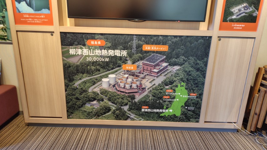 柳津西山地熱発電所は発電を開始してから30年を経過していて、結構歴史があると感じました。このPR館というのは事業主の東北電力と奥会津地熱が発電開始とともに建てたものですが、現在は東北電力系の東北自然エネルギー㈱が引き継いで運営しているようです。