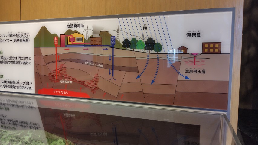 上の図がおおまかな流れ。マグマだまりの上にある地熱貯留層から熱水を引き上げ、発電に使います。その熱水は冷却したのちにまた地下へ返却します。昨日のテレビ番組で言っていましたが、日本はアメリカ、インドネシアについで世界3位の地熱エネルギーを持っているとのこと。だけど地熱発電量はかなり少なく10位に甘んじているそうです。原因はいろいろありますが、火山国である日本はもっと地熱を活用できる余地があるということ。自然に対するダメージが問題になっている風力発電や太陽光発電よりも地熱発電の将来に期待したいです。