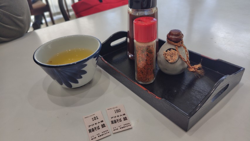 これは当たりでした。とてものど越しの良いおいしい蕎麦と辛みの強い大根で、すっきりさわやかにおいしくいただけました。あと写真の右下に少し映っていますが、たくあんがこれまたおいしかった。ショウガを使って漬けているようです。