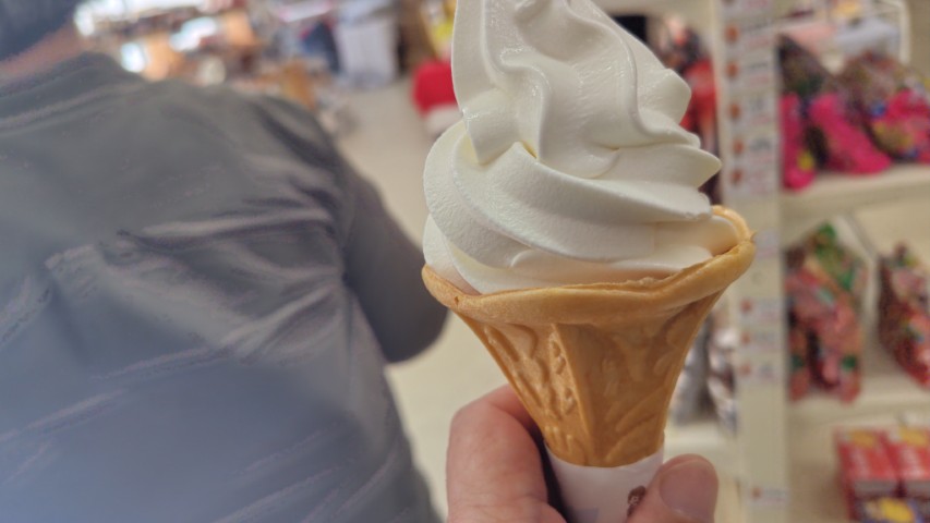 お出かけすると食べたくなるのがソフトクリーム。本当は赤カボチャソフトというのを食べたかったのですが、残念ながら品切れでした。